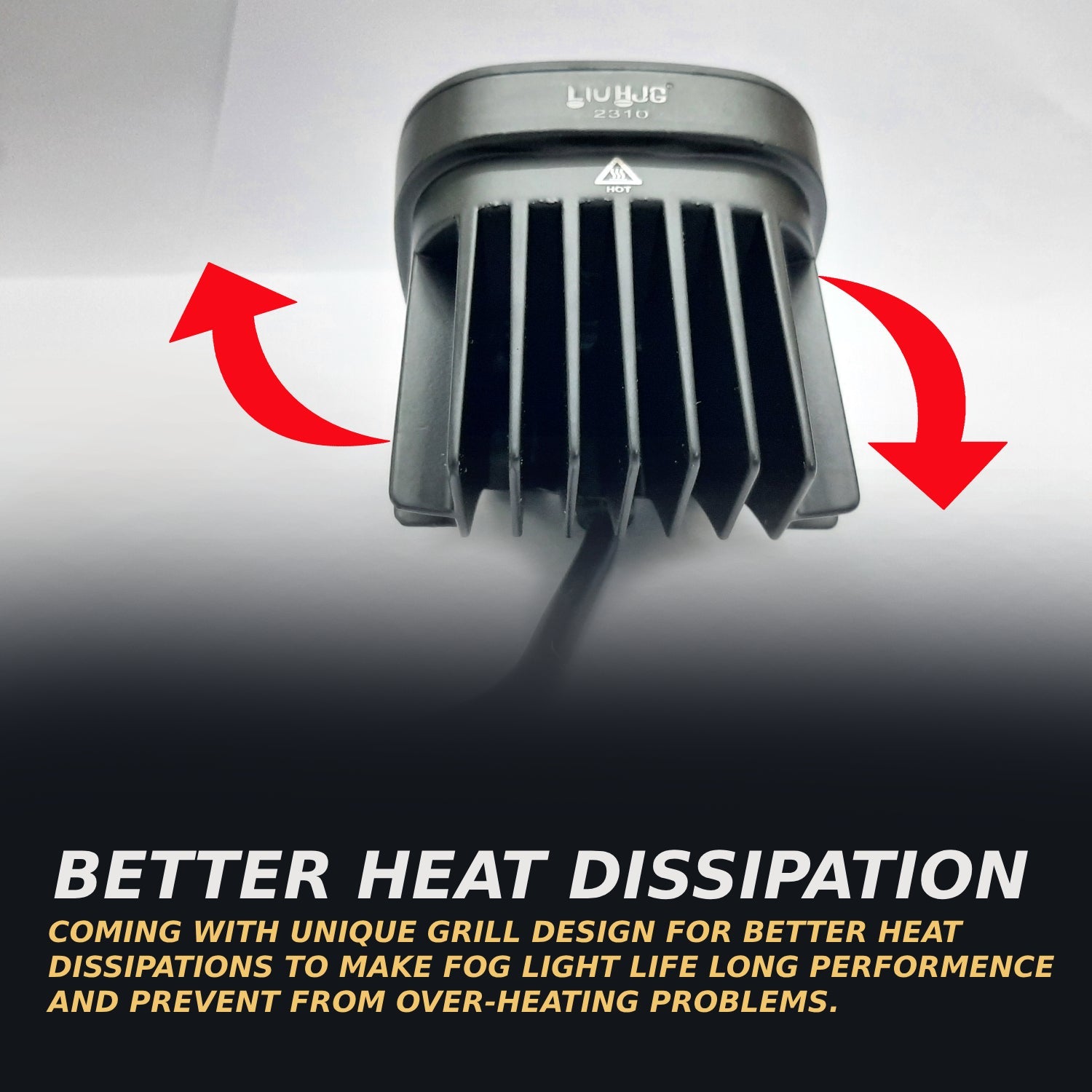 LIU HJG 60W LED Fog Light with Yellow Lens Cap & Wiring Kit | Universal Fit for Bike & Car