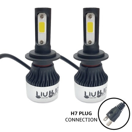 LIU HJG H7 LED Headlight Bulbs with COB Chips | 6500K White Light | 12-Month Warranty