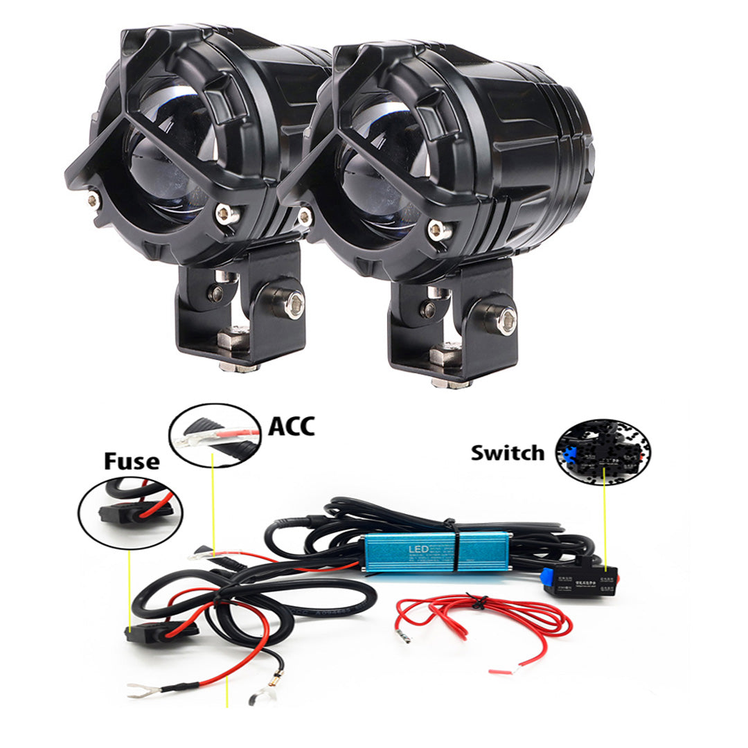 LIU HJG Mercedes Y-Lens Ultra-Wide LED Fog Lights (White/Yellow) | Pair with Wiring Harness & Switch for Car & Bike