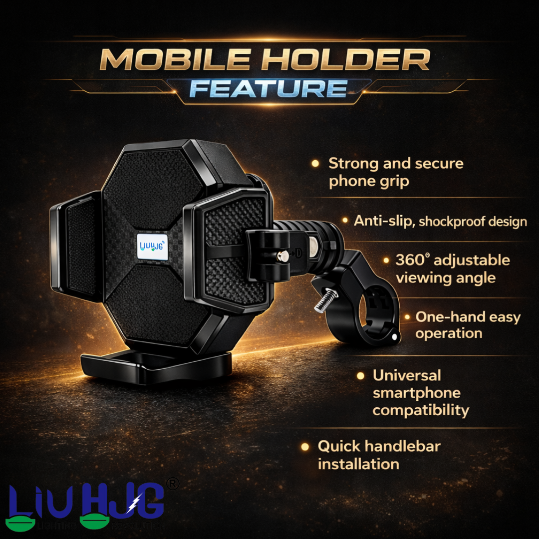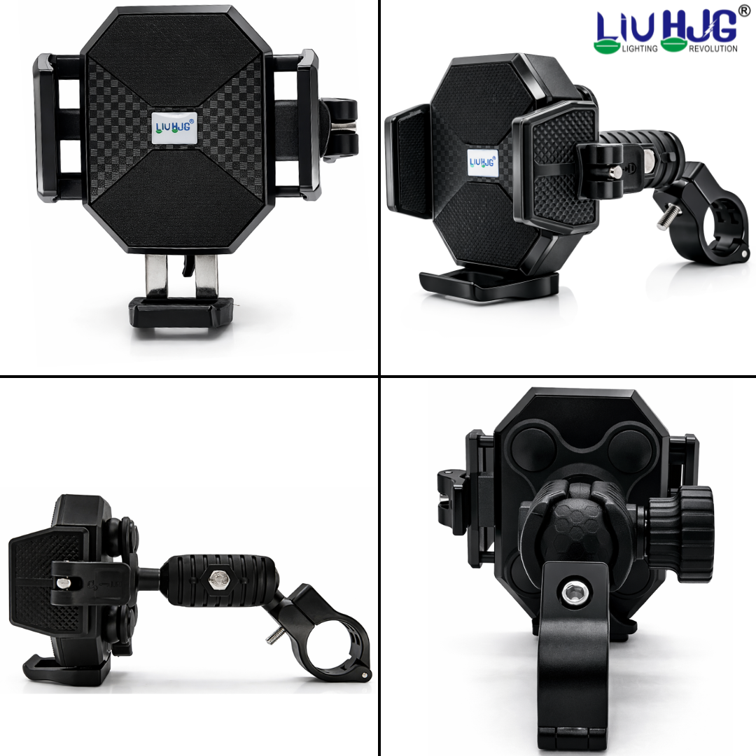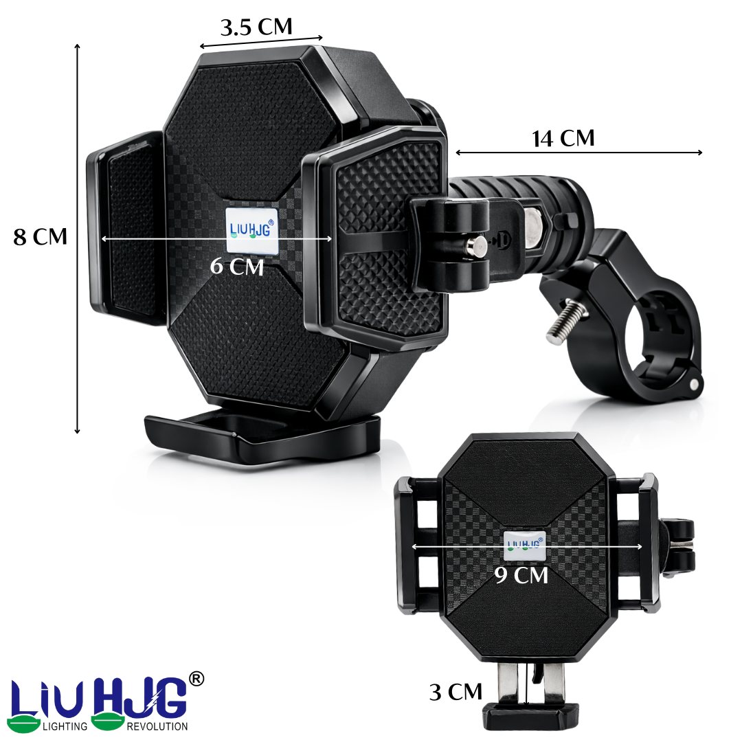 LIU HJG Motorcycle Mobile Holder Heavy Duty Adjustable Mobile Holder with Handlebar Fitting Universal Fitment 360 Rotational Shockproof & Secure Grip for Smartphones (Pack 1)