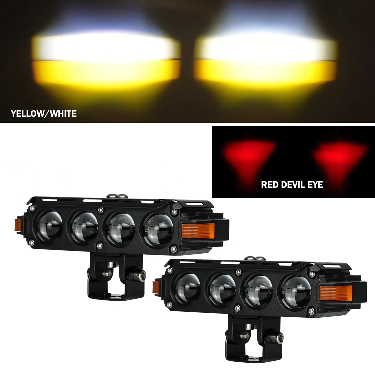 LIU HJG S-62 Future Eye LED Fog Light 4 Lens Rectangle Yellow, White, Red Devil Eye with Left-Right Indicator